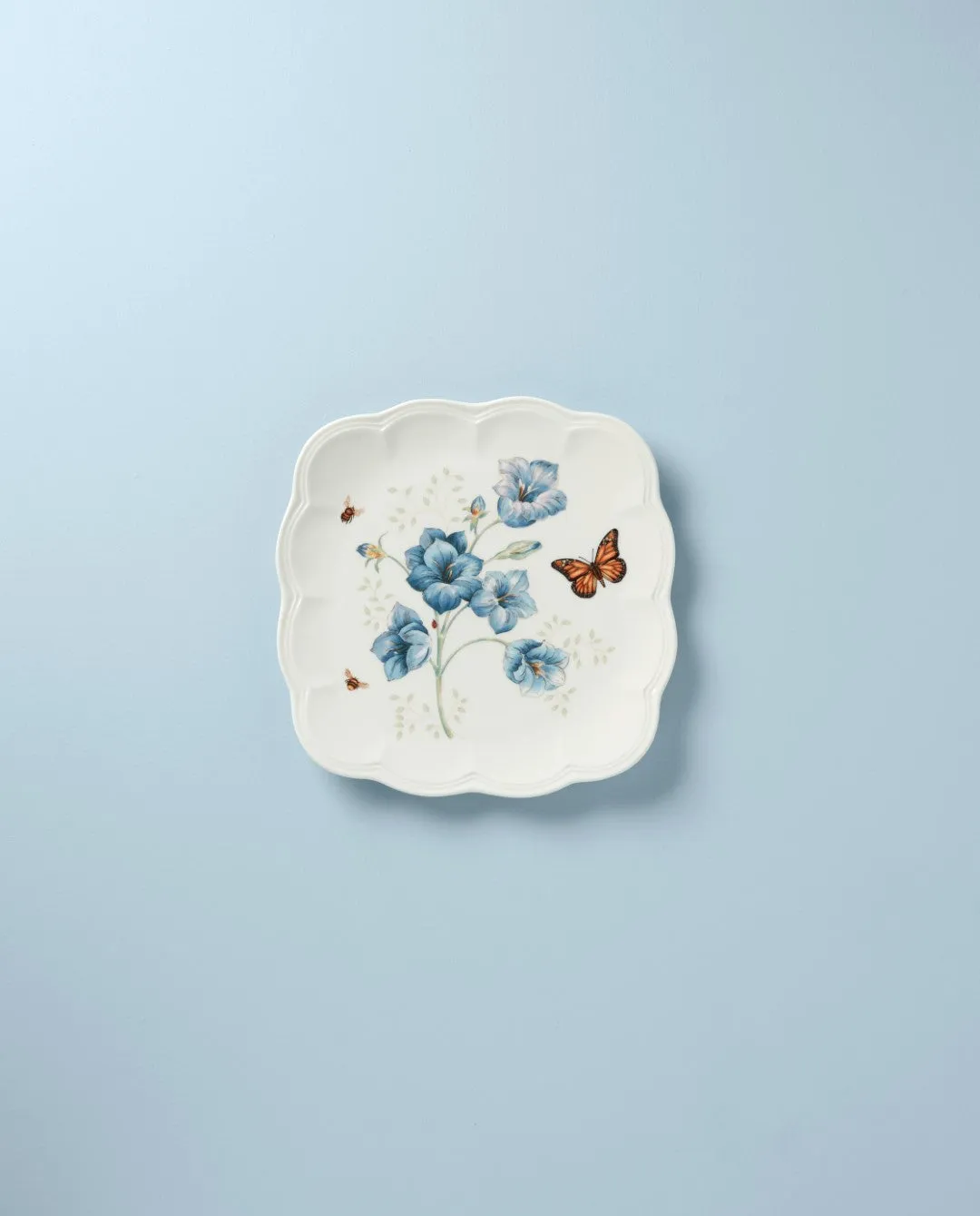 This lovely and lively piece features flourishing natural motifs and a medley of butterfly friends. Squared edges along with a blooming floral design and majestic fluttering companions welcome you to take a seat at the table. Dine on meals, desserts, or anything in-between with this dinner plate.