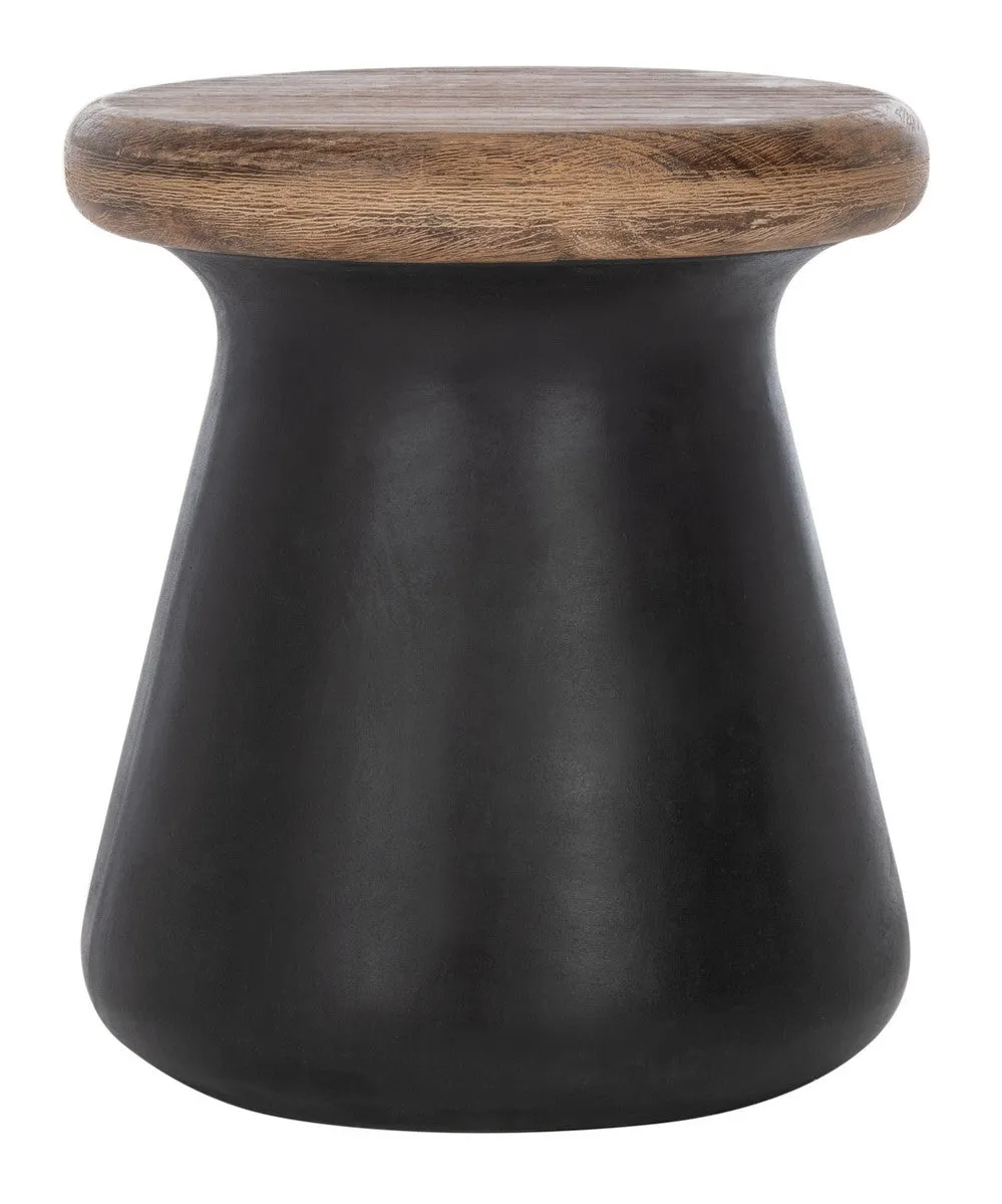 Designed to evoke a modern flair, the contemporary concrete Button accent table combines form and function. Crafted of an acacia wood top and a rich black base, this piece lends chic character to any space. Perfect for indoor and outdoor use.