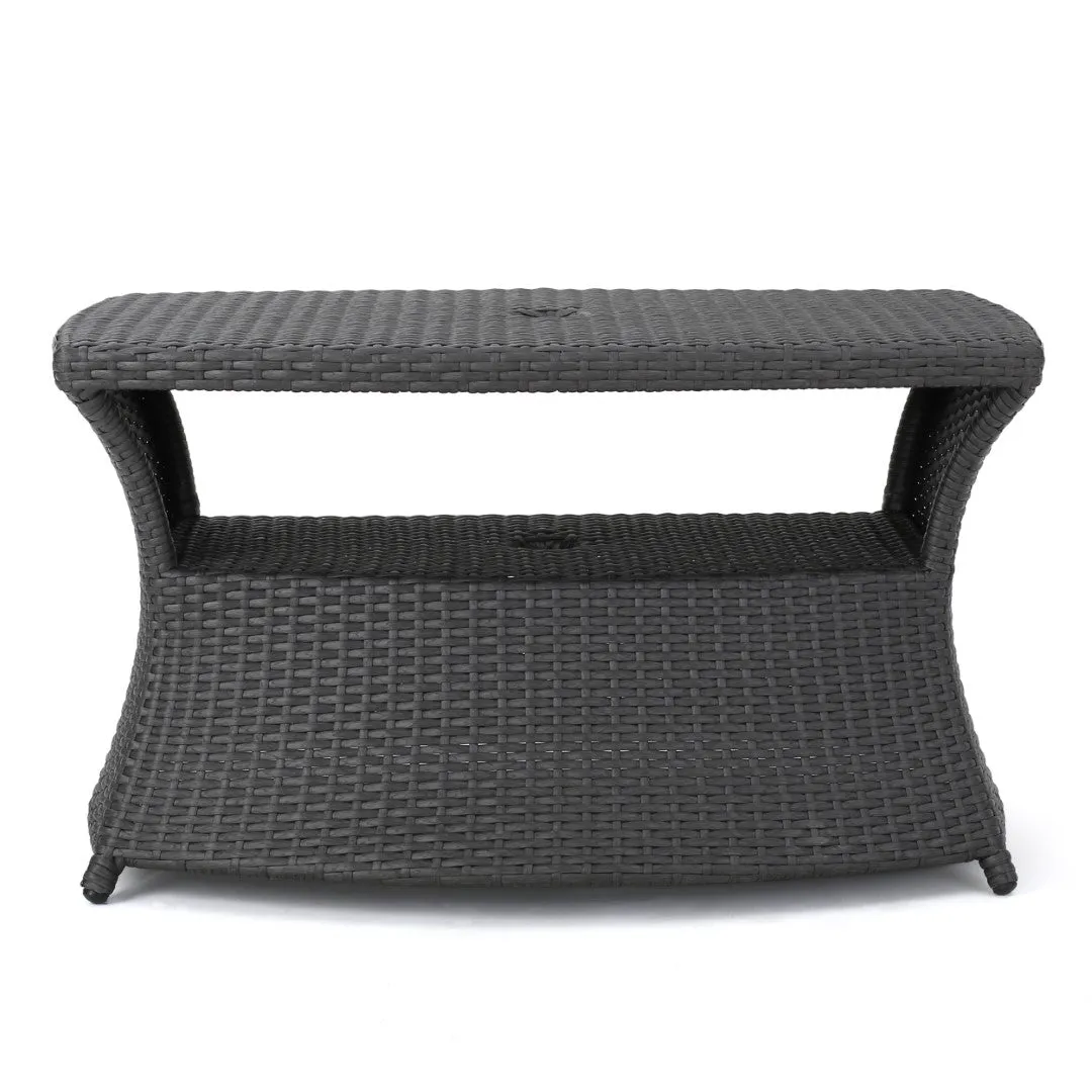 Christopher Knight Home® Berkeley Outdoor Side Table – Grey Wicker, Iron Frame – 22D x 34W x 19.5H