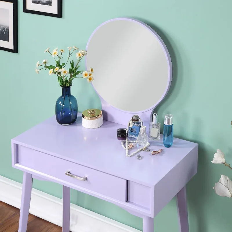 Wood Vanity Set with Stool, Purple | Rubberwood, MDF | Modern Design | 32.28 x 16.54 x 52.75