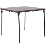 Introducing the versatile and durable Commercial Grade 2.83-Foot Square Bi-Fold Wood Grain Plastic Folding Table with Carrying Handle, designed to meet your various needs with convenience and style. This ready-to-use commercial table offers a compact and efficient solution for your seating requirements. The 2.83-foot folding table comfortably accommodates up to 4 adults, making it ideal for card games, extra dinner guests, and outdoor activities.