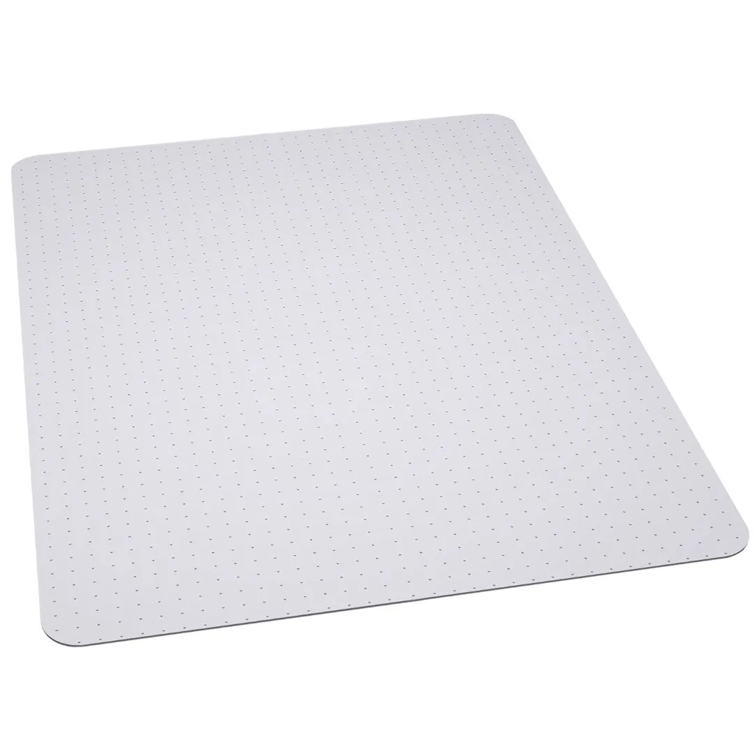 Transform your workspace with the Commercial Grade 36” x 48” Carpet Chair Mat, a top-tier solution for protecting your floors and enhancing your office chair experience. Crafted from clear vinyl, this chair mat is specifically designed for low pile carpet up to .125 inches thick, ensuring durability and functionality. The scuff and slip-resistant textured top surface provides a secure grip for your chair, while the studded gripper back keeps the mat in place. The straight edge design seamlessly transitions from the mat to the floor, offering a polished look to your workspace. Backed by a 1-year limited warranty, this chair mat is manufactured to meet GREENGUARD Gold specifications for low chemical emissions, promoting a healthier indoor air quality.Key Features and Specifications: