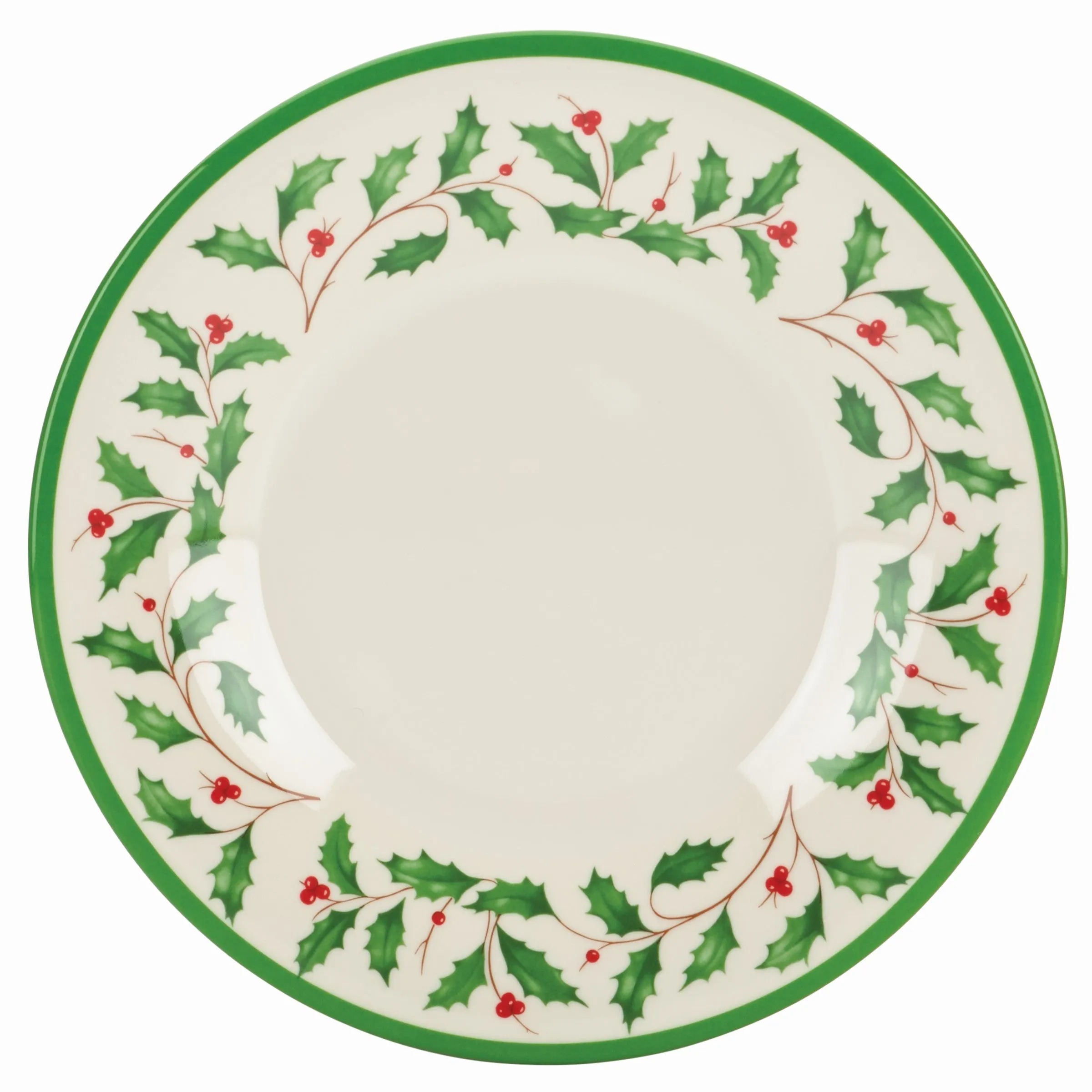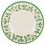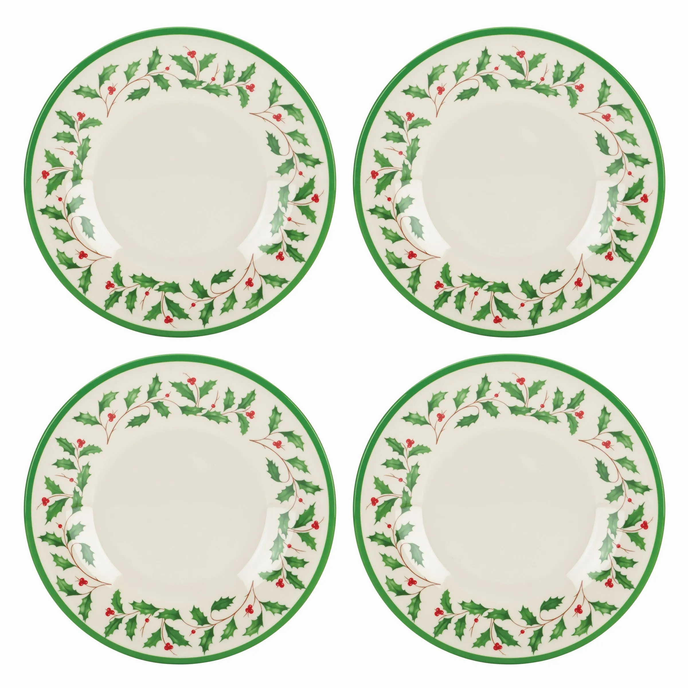 This four-piece set of melamine dinner plates feature a fun and festive red-green holly motif. This is the type of holiday-themed dinnerware that will see the most use of any set in the dinnerware collection.
