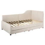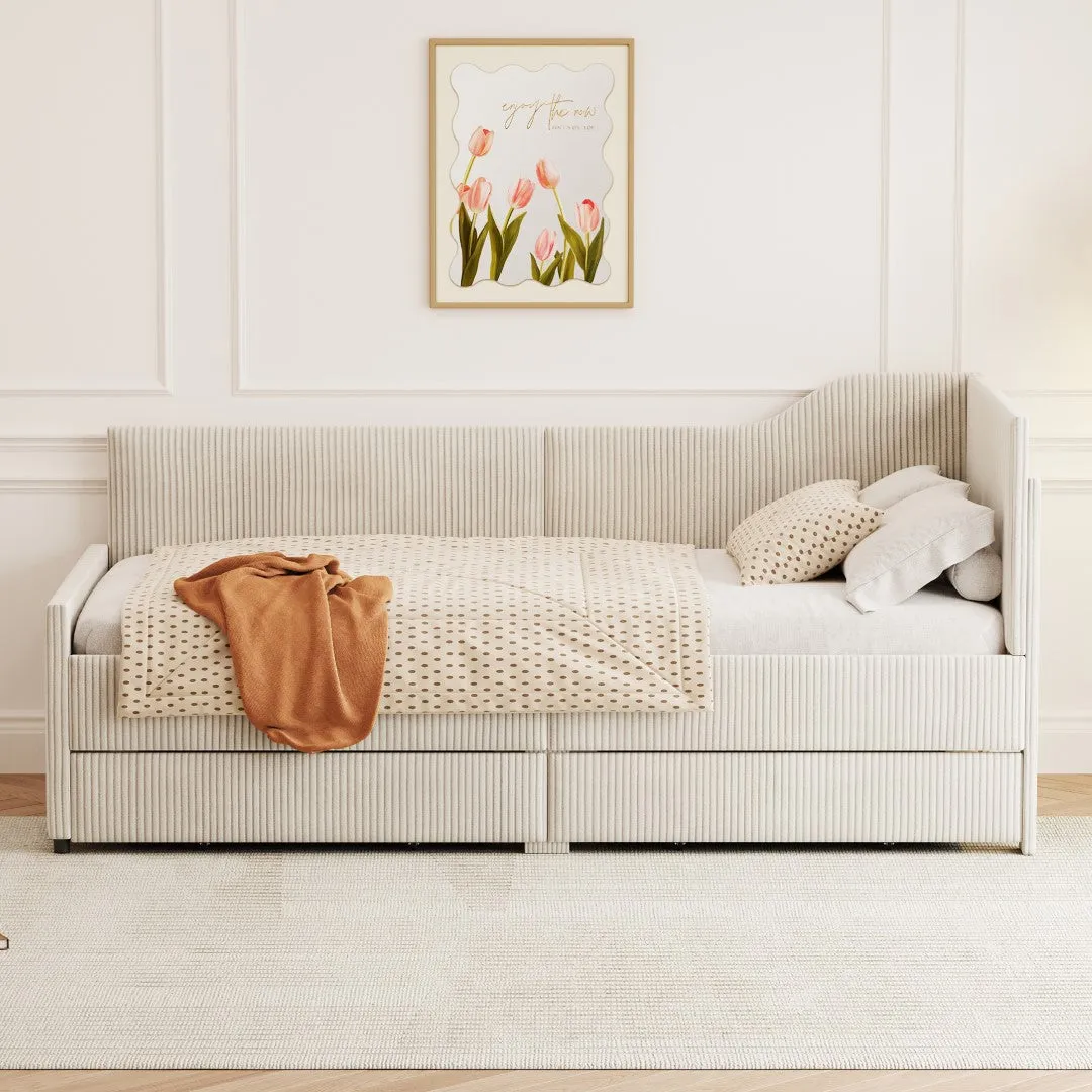 L-Shaped Daybed with Storage Drawers – Twin Size, Beige