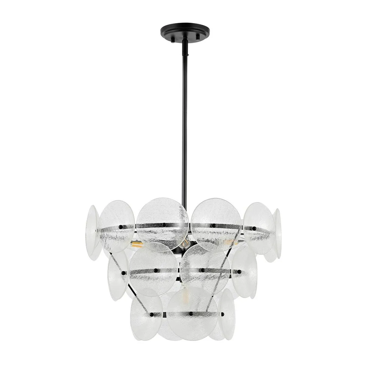 Revitalize any room with the spellbinding chic of this Landreth Chandelier. Flaunting three tiers of clear seeded glass disks that sparkle in the light, Landreth is a favorite among glamorously artistic designers.
