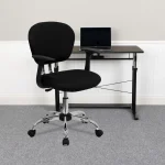 - Black mesh upholstery adds a contemporary touch to your office decor
