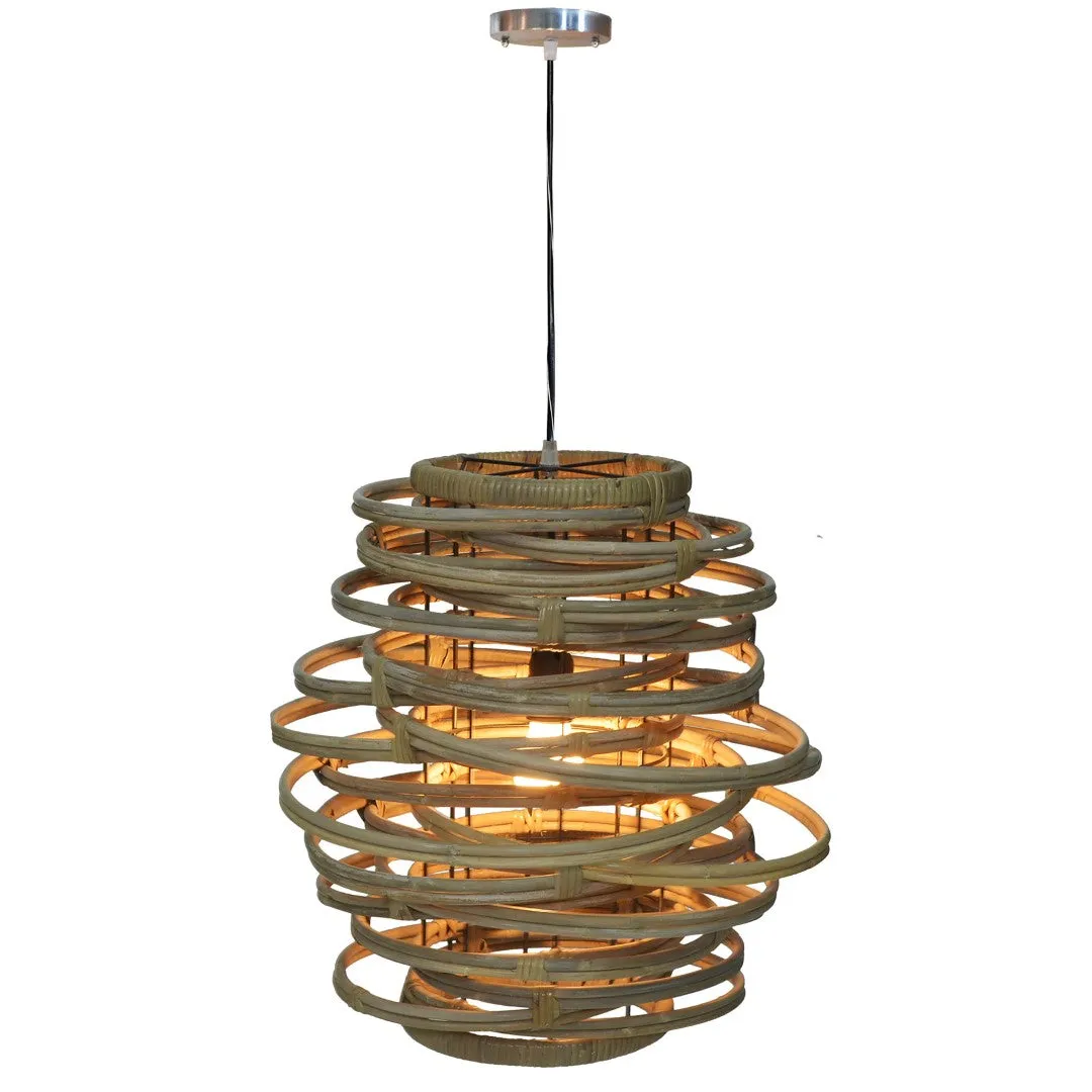 Like a swirling and festive party decoration, this whimsical pendant lamp instantly brings any room to life. Crafted of rattan in an artistic spiral around a metal frame, it’s available in three sizes. Arrange a group in matching formation across a large area, gather a selection of varying heights in a smaller space to make a bold design statement, or give full focus to an innavidual lamp, creating interest wherever you choose to hang it.