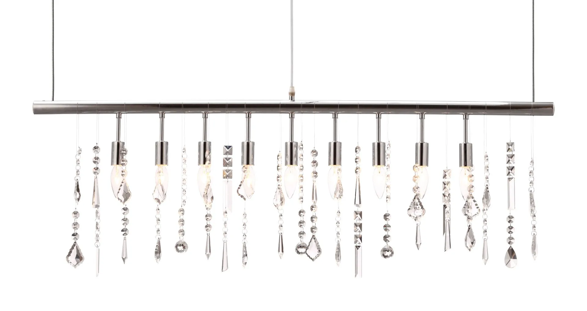 Like watching the movement of the heavens on a dark night, the Shooting Stars Ceiling Lamp will make you dream. Its chrome finish is offset by delicate crystal pendants. Max Watt 25 W, Size E12, Type B35. UL approved and listed. Bulbs are included.