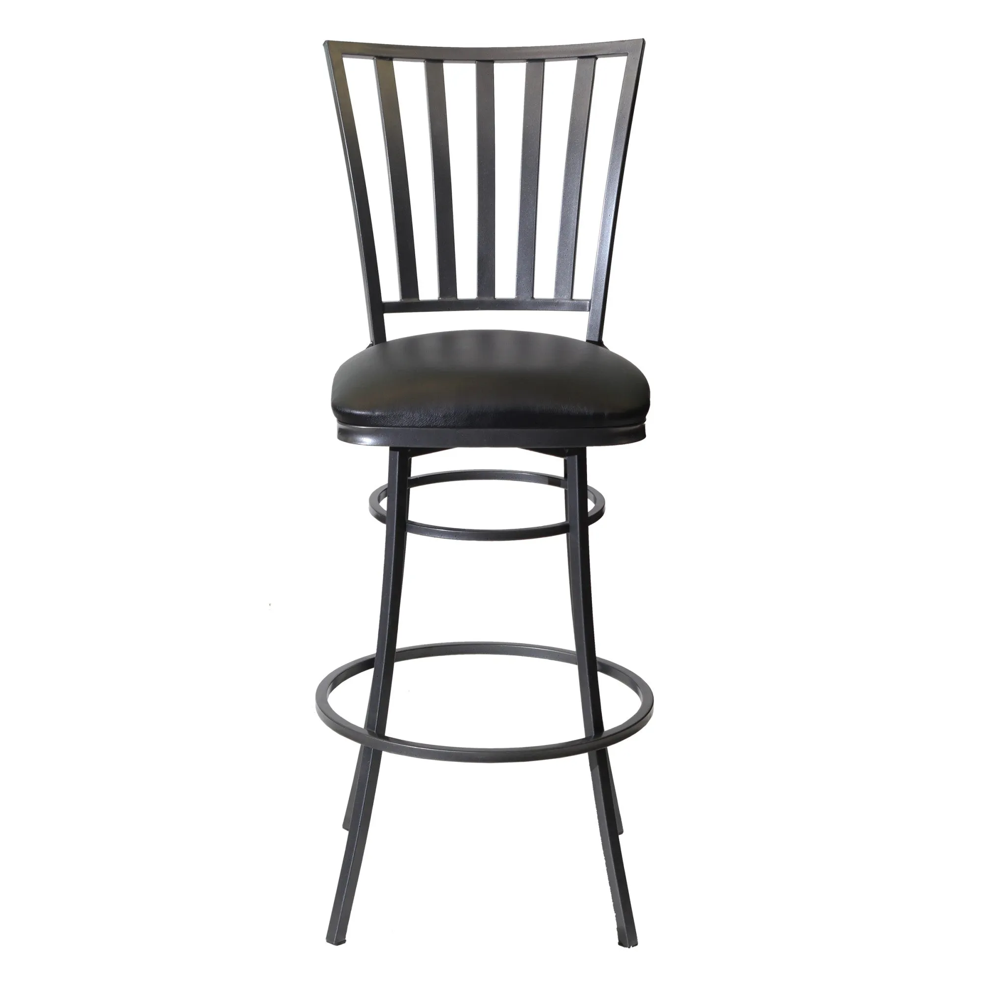 Comfort, style and durability in a Commercial Grade strength Bar Stool, Stellan adds some mixed media style to any counter area. A sleek powder-coated gunmetal finish mixes beautifully with the midnight leatherette seat that looks great and is comfortable. The full 360 degree swivel seat makes entrance and exit easy as well as enjoyable. This 30″ seat high chair works with any 42″ counter including Bar counters.