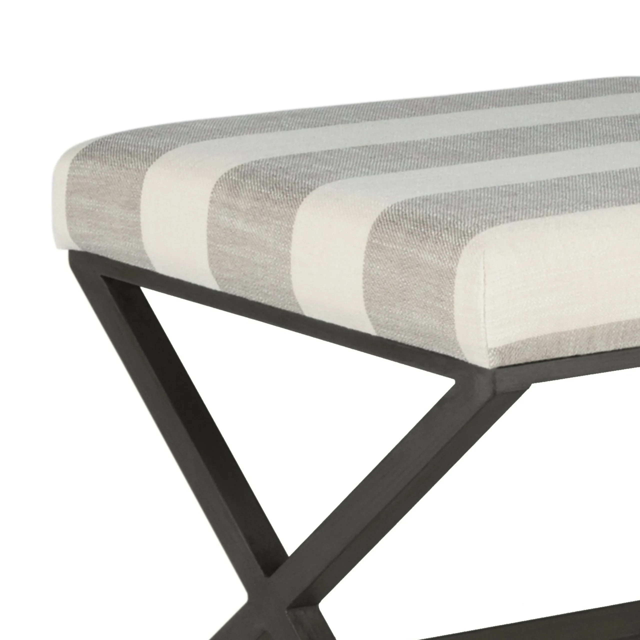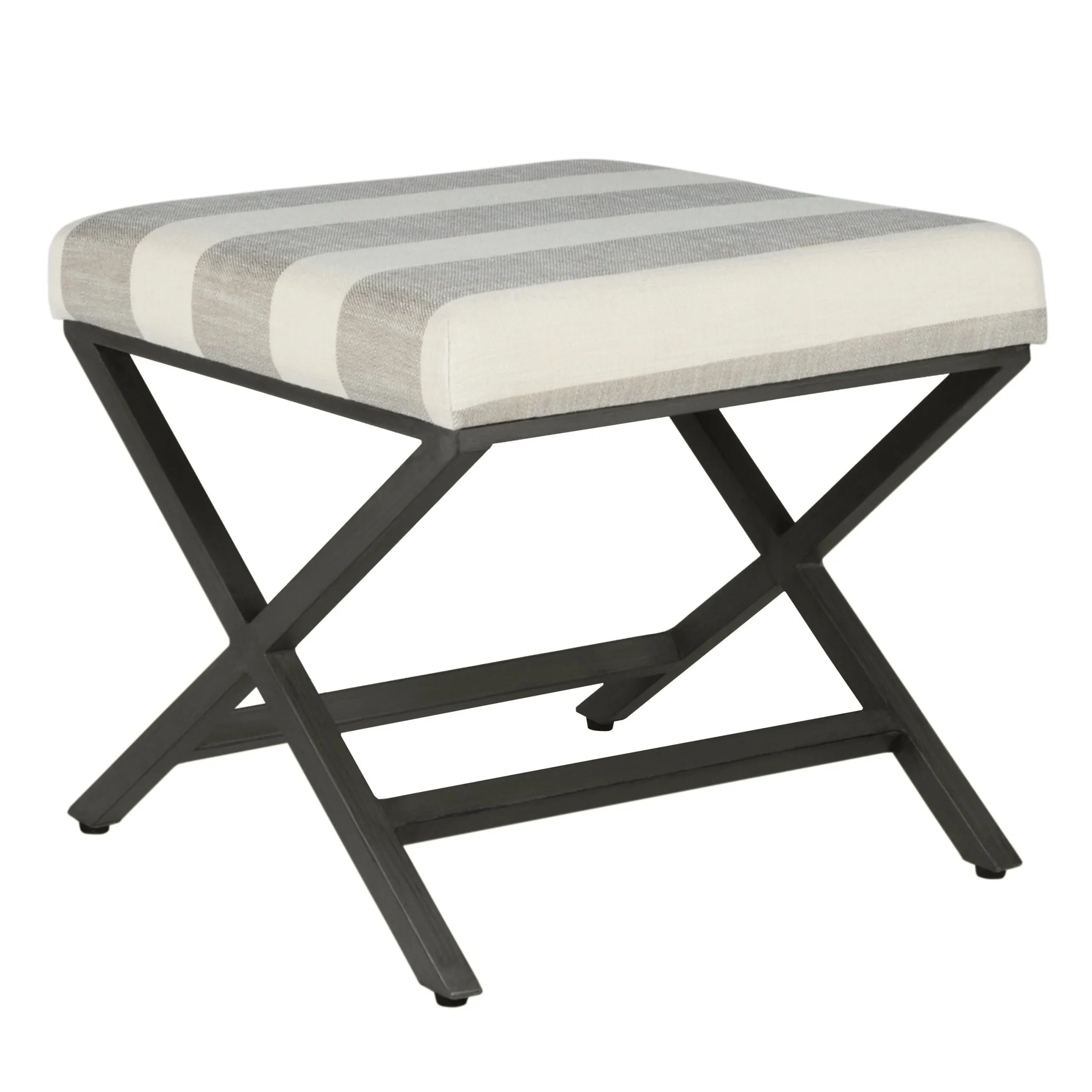 Home » Shop » Stripe Pattern Fabric Upholstered Ottoman with X Shape Metal Legs, Cream and Gray