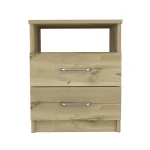 Good looking design and practical styling meet to form this 20-inch oak two drawer faux wood nightstand. Made of high quality manufactured wood that is built to last. This piece has 2 drawers for your storage needs. An easy-access shelf gives you additional storage and display space. The unsung hero of the bedroom, this nightstand is perfect for keeping a glass of water, lamp, alarm clock, jewelry, and more, close by and easily accessible. Nightstands are obviously great beside the bed but can be used just as easily to help battle clutter in your living room, hallway, office, or dining room. 19.9-inch H x 16.02-inch W x 12.9-inch D