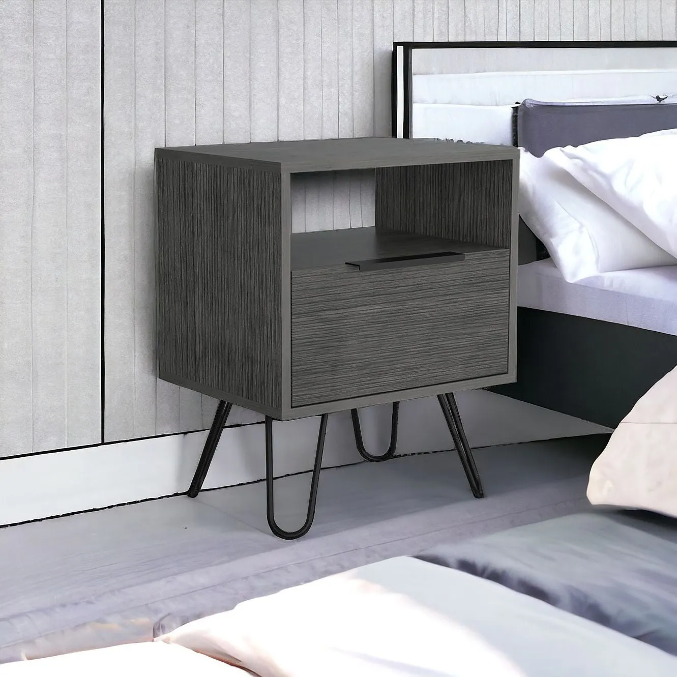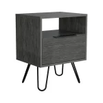 Good looking design and practical styling meet to form this 22-inch gray faux wood nightstand with storage. Made of high quality manufactured wood that is built to last. An easy-access shelf gives you additional storage and display space. The unsung hero of the bedroom, this nightstand is perfect for keeping a glass of water, lamp, alarm clock, jewelry, and more, close by and easily accessible. Versatile in use this nightstand would also work as a great end table in the living room, hallway, or office. 22.2-inch H x 17.7-inch W x 13.7-inch D