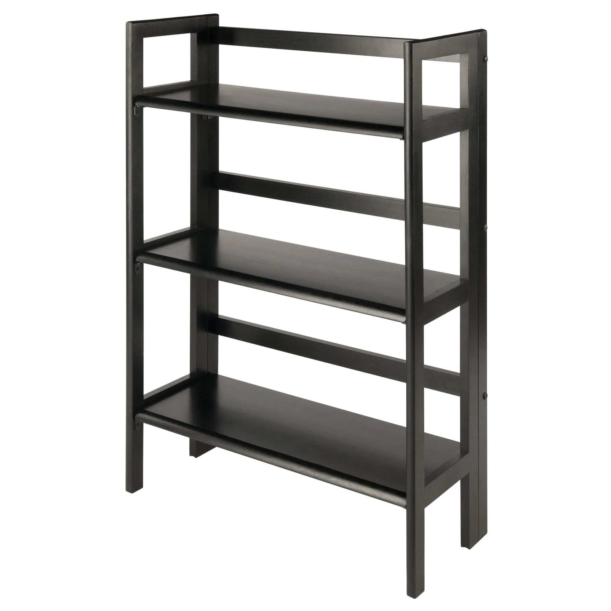 The Winsome Wood Terry Foldable Shelf is great storage for the space conscious user. Ideal for the laundry room or home office as this 3-tier shelf can be stacked up to two units to provide you with additional vertical storage space. Keep seasonal accessories handy in the closet, store the kid’s toys, or use as a standalone bookcase in the family or living room. So, whether you need it to store towels and laundry detergent in the laundry room, or books and collectibles in your home office, this shelf easily folds up and can be moved into another room or stored away taking up minimal space. Finished in black and made of solid wood for long-lasting durability. Conveniently shipped in one box, ready for assembly with hardware necessary included. Replacement parts can be requested directly to the manufacturer within 60 days from date of purchase.