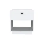 Elevate your bedroom decor with the White Finish Nightstand Viliigili, a stylish and functional furniture piece designed to enhance your living space. This nightstand features a sleek white finish that effortlessly complements any interior style, making it a versatile addition to any room in your home. The convenient drawer, measuring 4 inches in height and 15.1 inches in width, provides ample storage for your essentials, while the shelf, sized at 10 inches in height and 17.3 inches in width, offers additional space for displaying decor or setting objects.Crafted with the finest quality materials, this nightstand is built to last, ensuring long-term durability and reliability. Although full assembly is required, the ready-to-assemble design simplifies the setup process for your convenience. Please note that decorative items are not included with the nightstand. To create a cohesive look in your space, consider pairing this nightstand with other items from the collection, available for purchase separately.Key Features and Specifications: